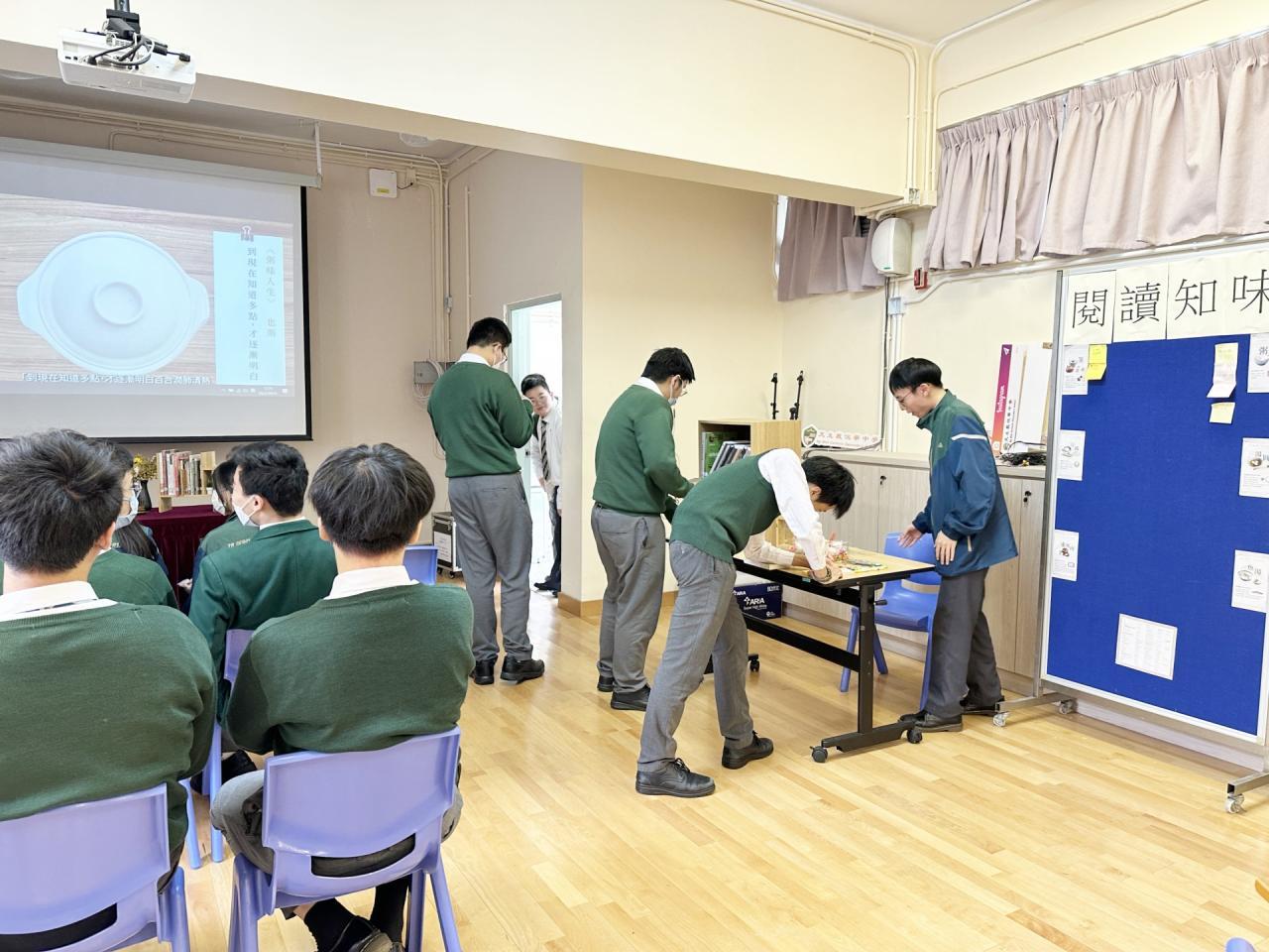 2024-02-29 為了讓學生了解不同作者筆下的飲食故事,尤其了解香港這個既繼承中華傳統又吸收外來養分的獨特飲食文化,中文科於2月26日至2月29日午膳時段在學校活動室舉行了「閲讀知味」主題書展。活動期間播放了名人名家飲食作品的相關視頻、提供了古今中外飲食書籍予學生閲讀,讓學生們在輕鬆之餘,也感悟到飲食之道。 活動剪影
