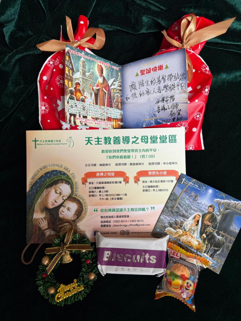 2025-12-06 為讓學生透過服務進行學習,促進個人成長,中一級學生參加本校與善導之母堂在12月7日合辦「聖誕送溫暖傳福音」活動。活動當天,善導之母堂教友及中一學生準備精美的福傳禮物包,免費派發給區內的兄弟姊妹,攜手分享聖誕的真正意義——愛與關懷,讓福音及愛心傳遞到社區每一個角落。 活動剪影