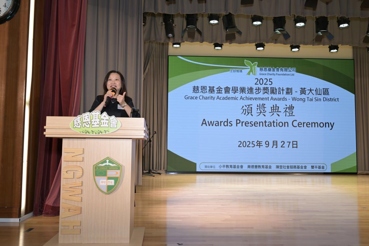 為隆重其事,慈恩基金會於2025年9月27日,假本校禮堂舉辦了「2025慈恩基金會學業進步獎勵計劃」頒獎典禮,教育局總學校發展主任(黃大仙)馮俊文先生、陳登社會服務基金會陳玉坤女士、伍旬節聖潔會永光書院郭文坤校長、本校李宛儀校長暨各校校長及師生都抽空出席,場面熱鬧。