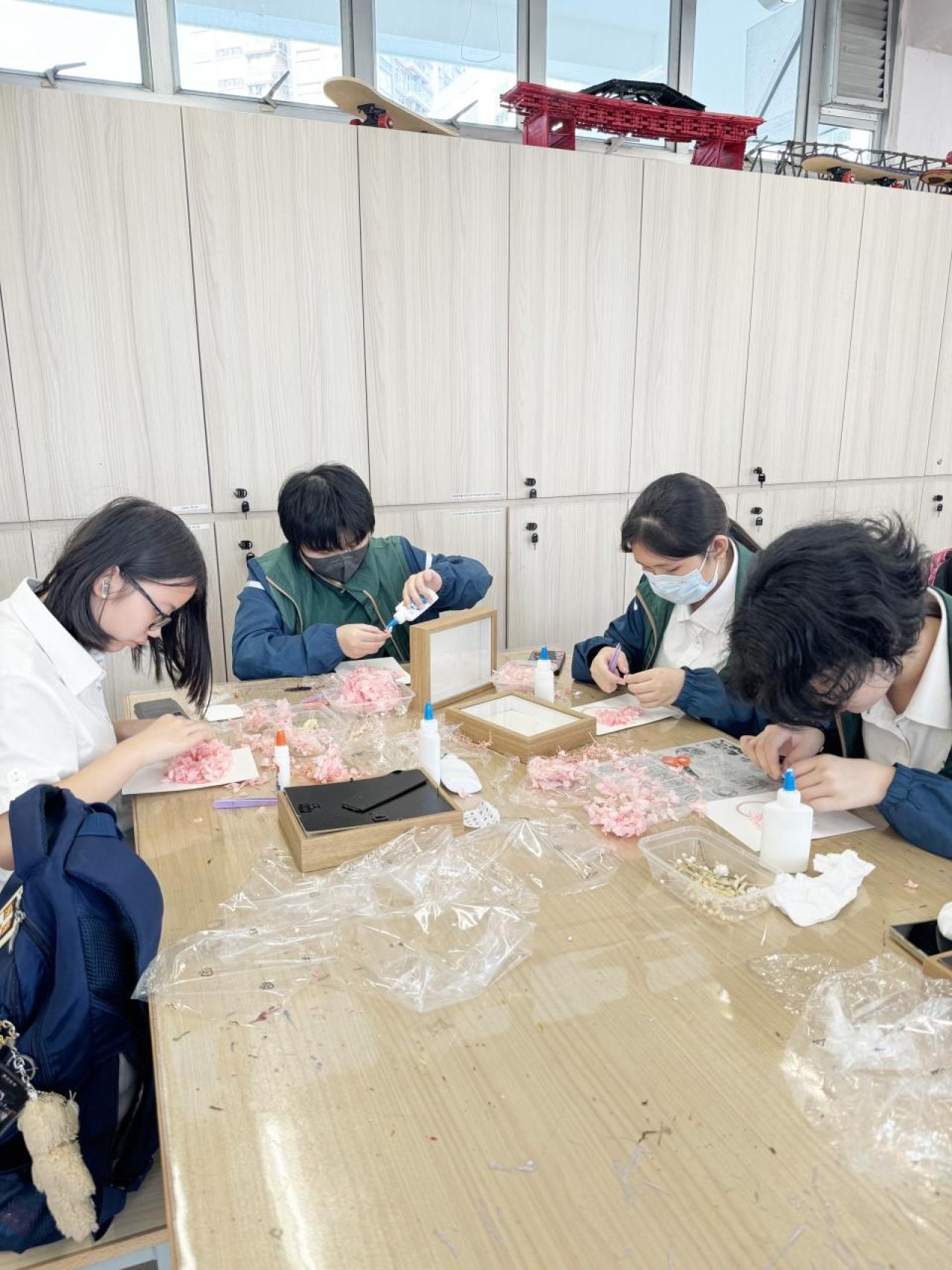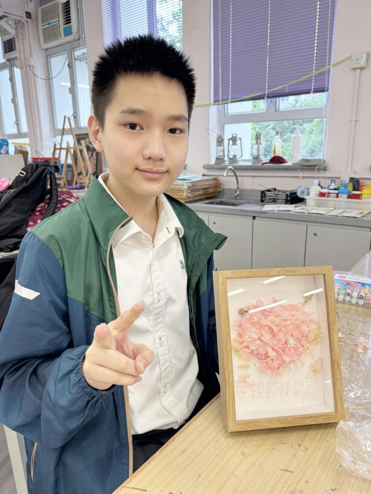 為表達對家人的謝意,弘揚孝親精神,級社於2024年5月8日舉行母親節永生花製作工作坊,同學投入參與,製作認真,製成品精美,同學於母親節當日送贈給母親,意義非凡。