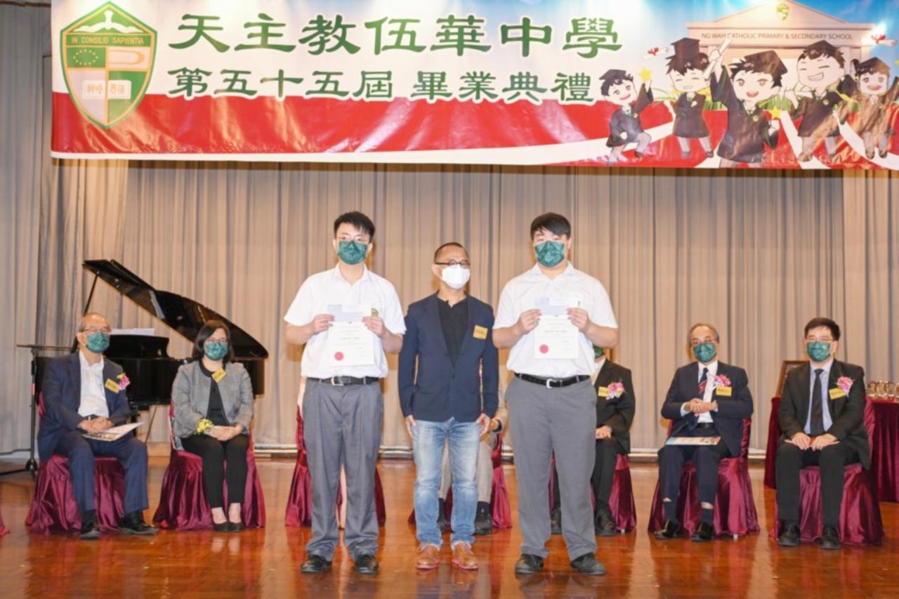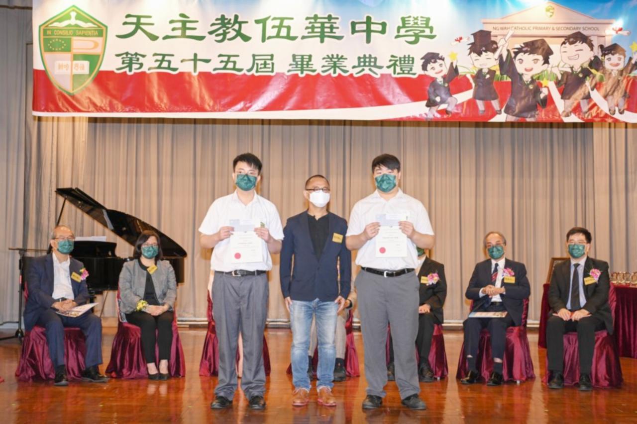 2022-06-25 第五十五屆畢業典禮於二零二二年六月二十五日隆重舉行。 典禮由校監陳德雄神父領禱開始,然後主禮嘉賓呂達文先生致訓辭,他勉勵學弟堅持追求自己夢想,保持熱情,終能邁向成功。接著呂達文先生向全體畢業生頒授畢業証書,而校監陳神父頒授教職員長期服務獎,感謝他們多年的努力付出,場內掌聲雷動,把整個畢業典禮氣氛推至高峰。 最後,畢業生代表潘慶文同學致辭,及向學校贈送紀念品,感謝師長關愛教導,感激家長和同學相知相伴,並銘記校訓慎思明辨,整個畢業典禮亦於全體師生合唱校歌下正式落幕。 活動剪影