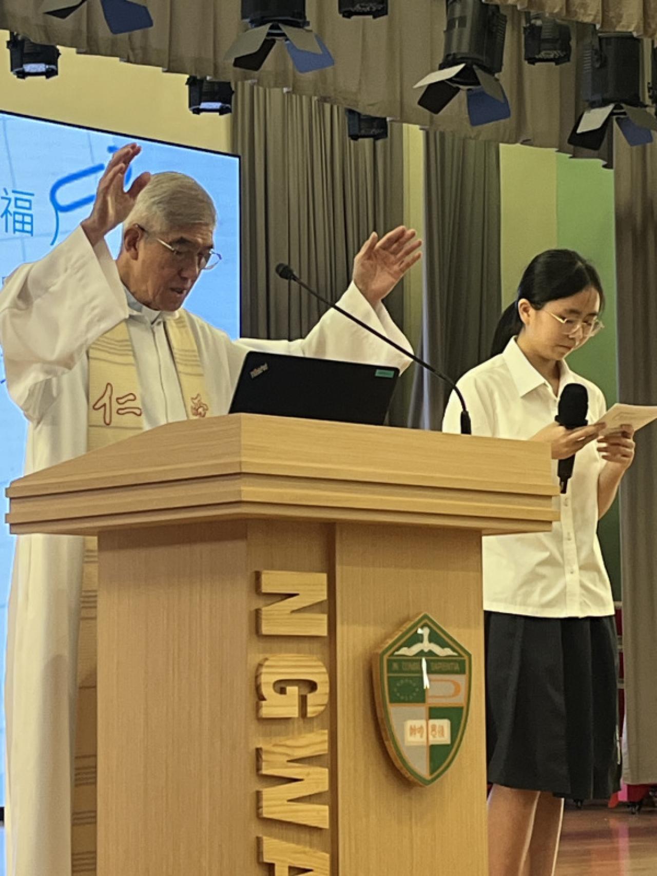 2025-09-03 天主教伍華中學開學祈禱會已於9月3日舉行,當日由校董林銘神父主持。林神父在祈禱會的講道中引用了經文「在世人中你們應放光明,有如字宙間的明星,將生命的話顯耀出來。」來鼓勵學生善用自己的才能,令自己的生命猶如天`天上的明星照亮自己照亮他人。 活動剪影