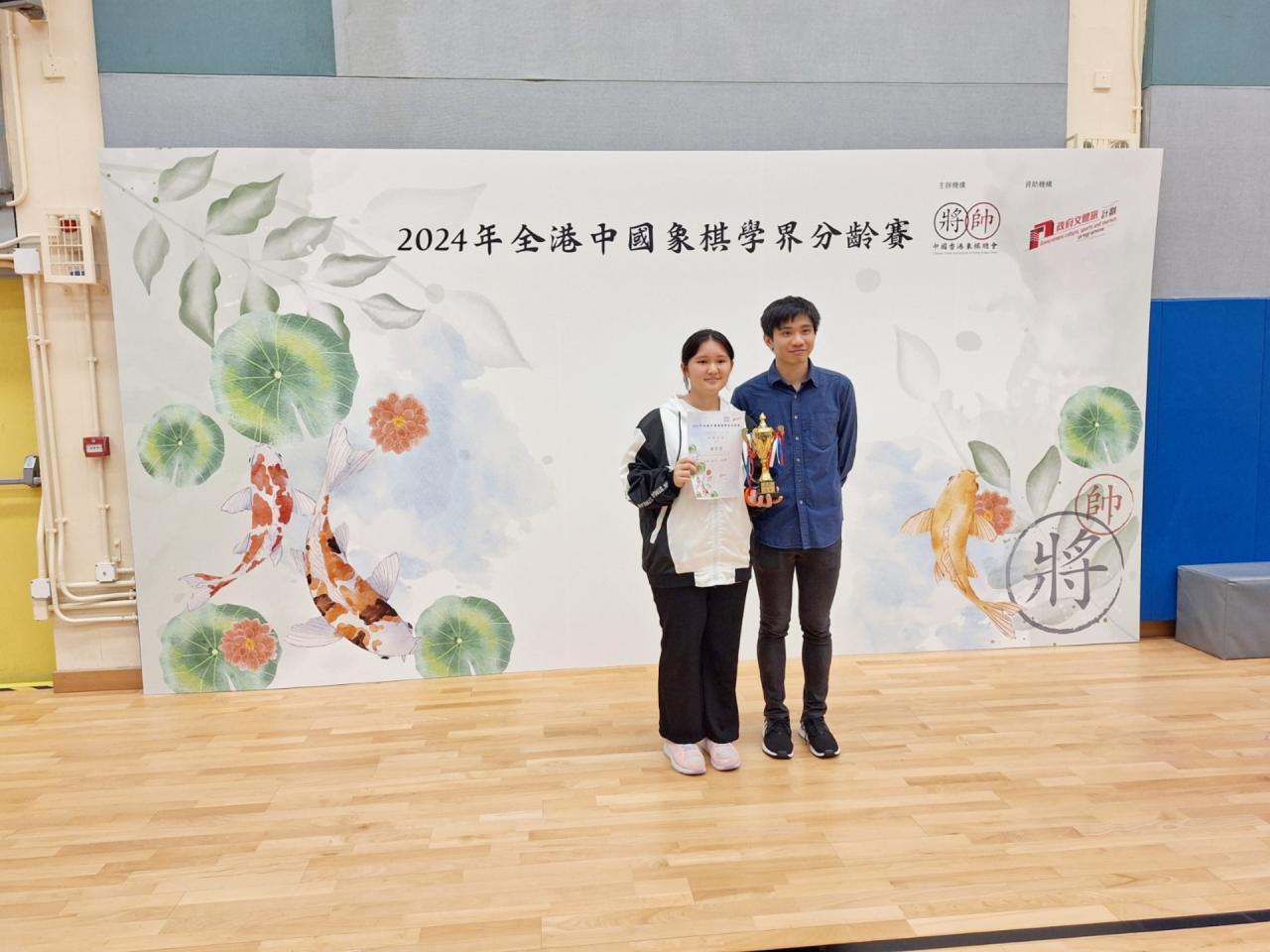 本校有5名中二級學生參加了由香港象棋總會舉辦的2024全港中國象棋學界分齡賽。 賽事共進行七輪積分循環制,同學們都努力應戰。最後,女子隊員獲得U14組別的個人冠軍及亞軍。 女子U14冠軍:2B楊紫熒 女子U14亞軍:2C范霈宜