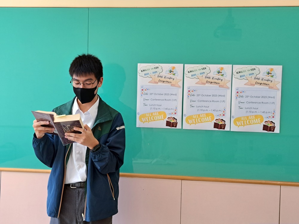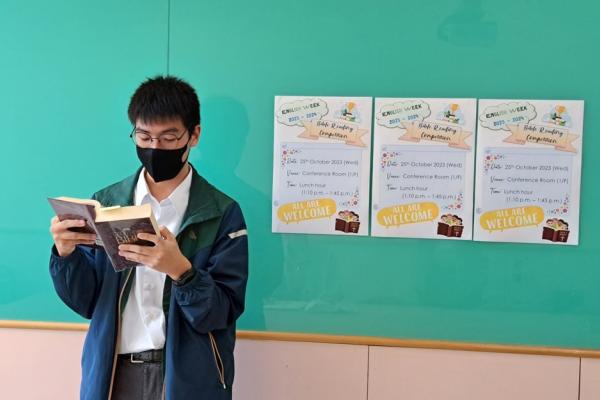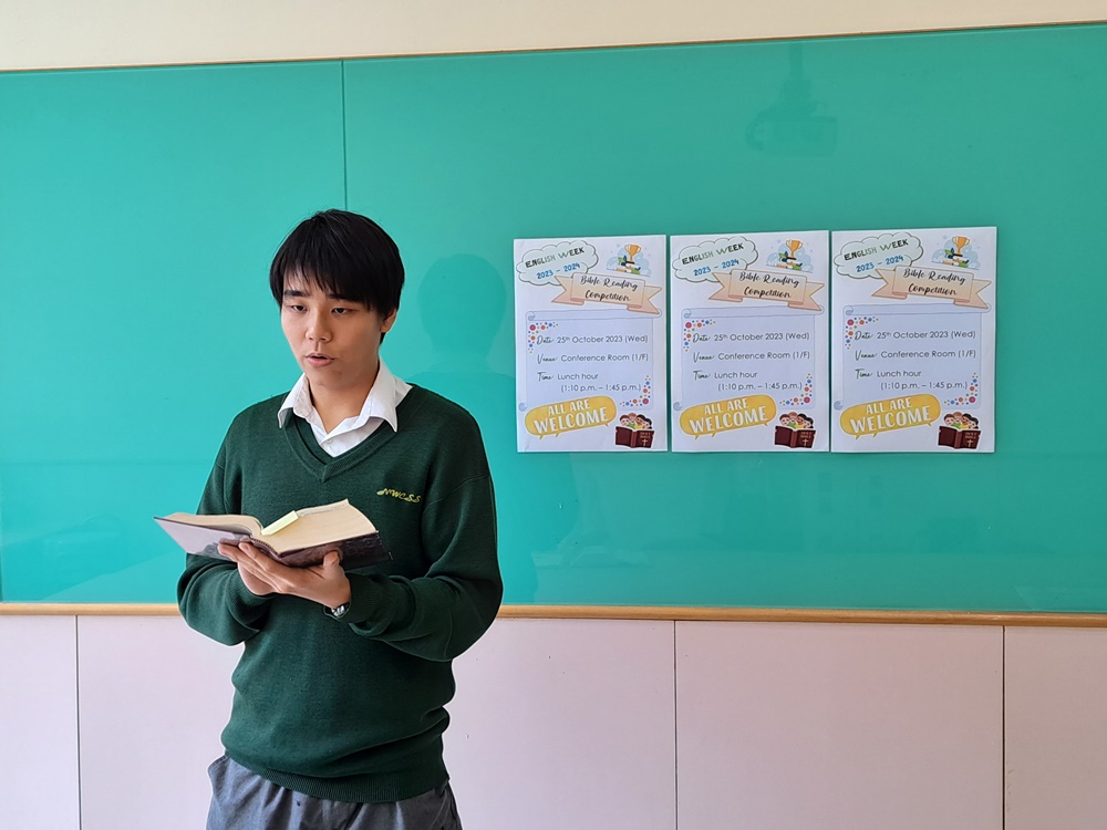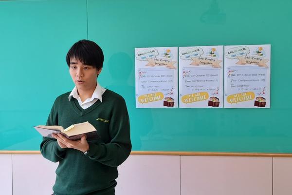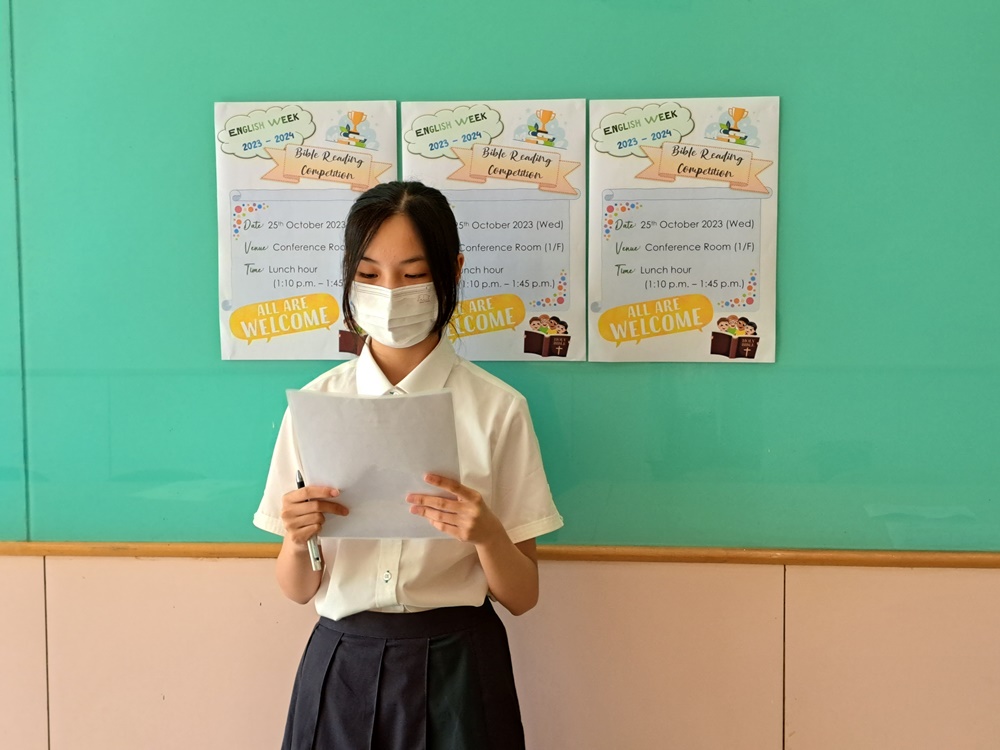 With the support of all the Panel Members of the English Department and our Ng Wah boys and girls, the “Bible Reading Competition” was successfully held in our Conference Room during Lunch Hour on 25th October, 2023 (Wednesday) to celebrate our English Week in this academic year. There were total 77 competitors joining this competition. Special thanks to our adjudicator, Mr WK Liu (The Panel Chairperson of S1 to S6 Ethics & Religious Education).