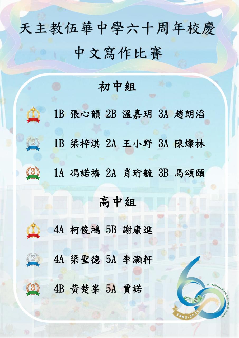 學年轉眼間便快要結束了,主人為獲得佳績,每天放學後,主人都會在課室奮努力溫習。一天如此,一個月也是如此,日以繼夜。每當主人身心疲倦時,他總是低下頭望着我,望着我身上的伍華校徽,為了自己有朝一日可以登上舞台領獎,望着禮堂舞台對面懸掛著的校徽。