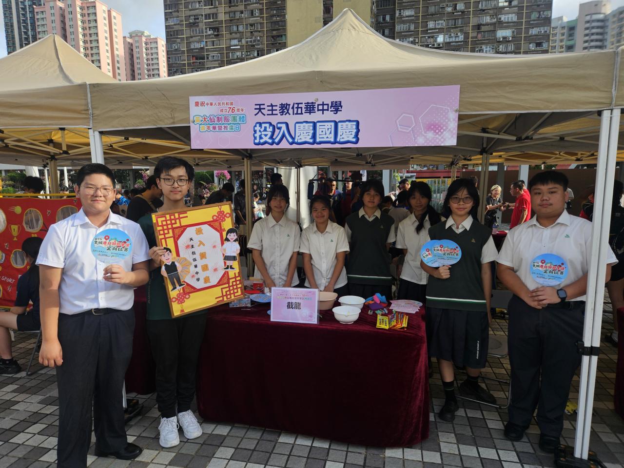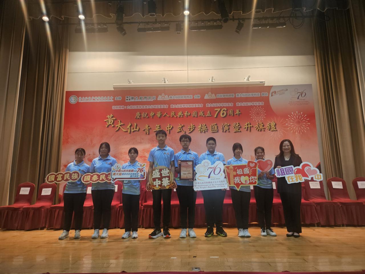 2025-09-28 本校派出多名領袖生及制服團體代表,參與黃大仙賀國慶活動。學生分別參與上午舉行的升旗禮,以及於下午參與國慶攤位遊戲的設計及主持工作。此外,本校亦派出學生代表,參與才藝表演的環節,演唱流行歌曲,以及本校六十周年校慶主題曲《六十同步》。 活動剪影