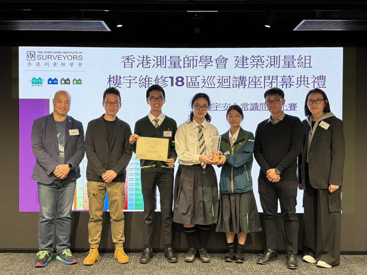 2025-11-22 本校學生日前參與由香港測量師學會舉辦的《18區樓宇安全常識問答比賽》,透過活動認識測量師工作、加深對樓宇安全的認識,讓他們明白維護社區安全的重要性。三位同學最終榮獲亞軍,獲獎的學生包括:3B 陳啓豐3B 朱睿珊3B 温嘉玥 活動剪影