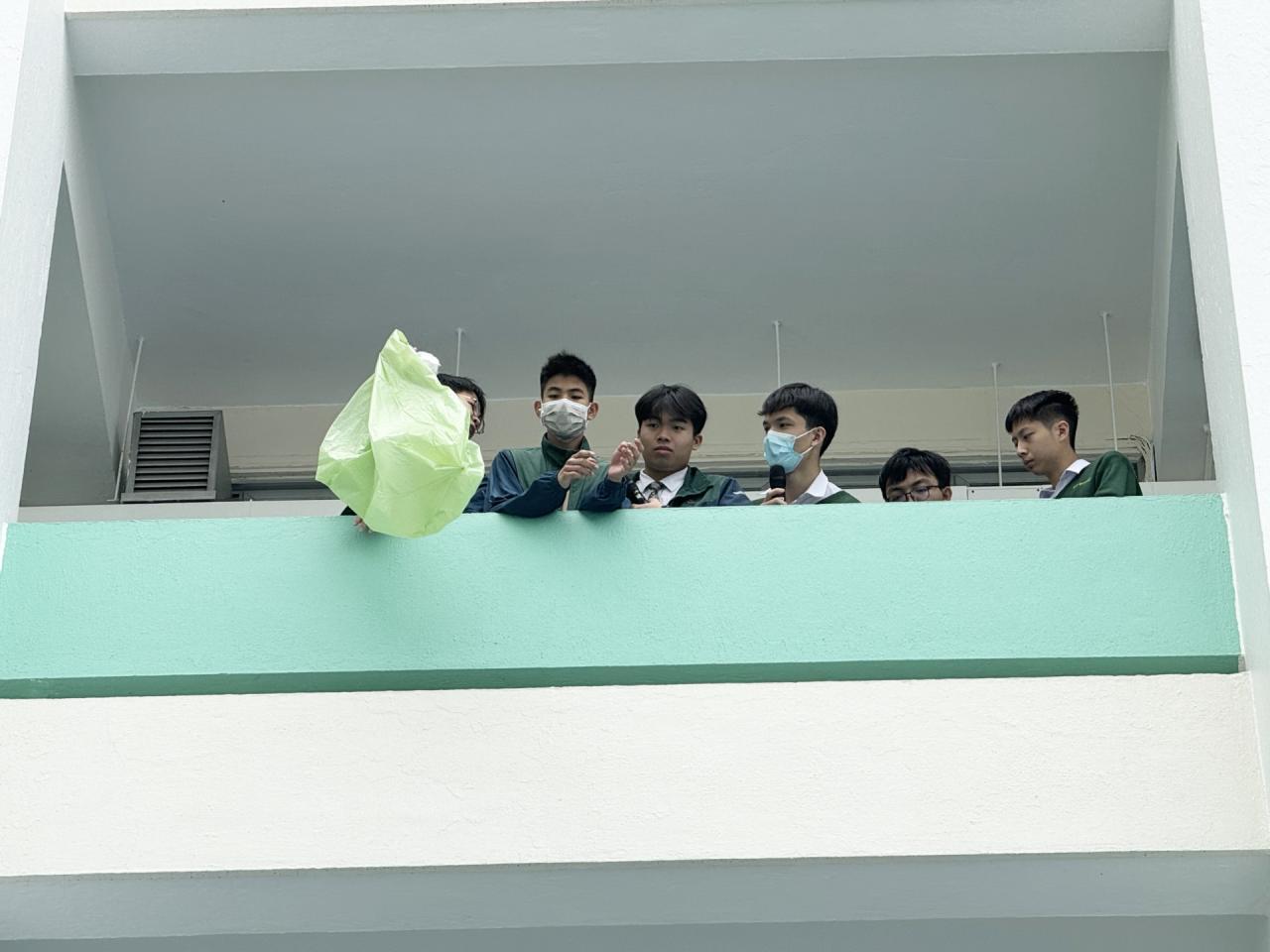 2023-12-21 本年度,中一及中二級進行「雞蛋撞地球比賽」,把一隻「生雞蛋」從學校的三樓向地面墜下來,他們運用有限的物資,為「生雞蛋」設計各形各式的「保護措施」, 務求使「生雞蛋」成為「雞蛋撞地球」後的「生還蛋」。最後,同學成功地完成這次「任務」。中一級丁班除了獲得冠軍外,也獲得了「最具創意獎」。 活動剪影