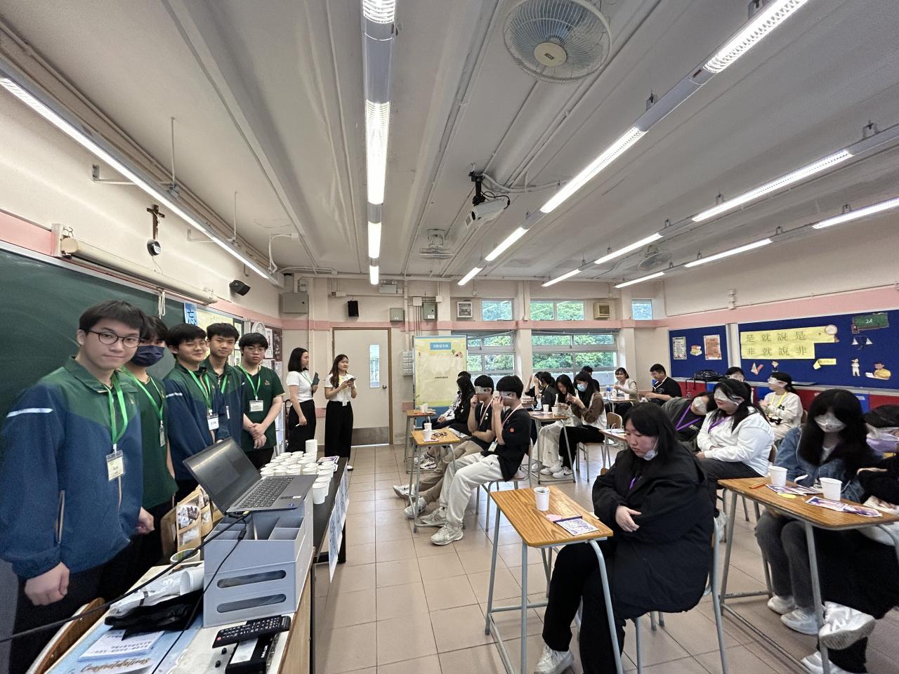 輔導組長於「賽馬會平行心間」(校園版)計劃中表現卓越,故獲計劃團甄選在聯校學會領袖活動,與40所學校的學會領袖分享活動籌辦的經驗,並藉此加強友校之間的交流。 當天,我校代表向參與者分享了兩個攤位活動,分別是「清心茶座」及「忘憂角落」,旨在讓同學透過品嚐花茶來排解煩憂,以及在寧靜的環境裏享受熱敷眼罩,小休一會,暫時把掛慮放下。 友校的學會領袖均欣賞我校同學的構思,並對各位負責分享的輔導組長給予肯定和鼓勵。