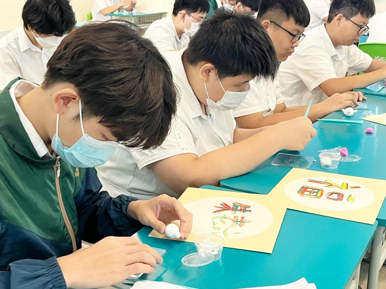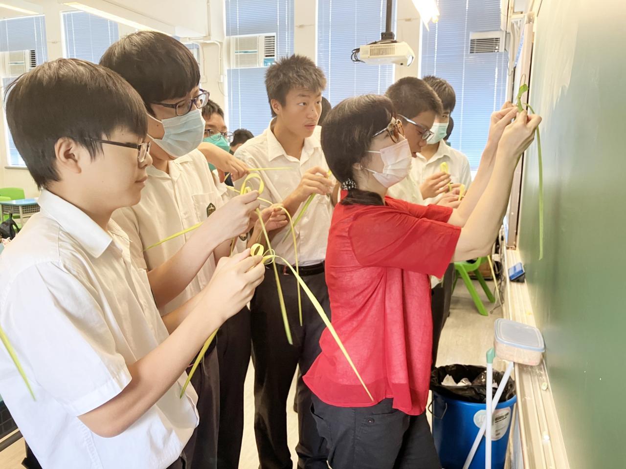 為讓同學認識中國傳統工藝,中文科為中二及中三級同學舉辦傳統工藝工作坊,由專業傳統工藝師親身教授織草蜢、麵塑公仔及彩虹書法。活動當中同學能動手製作傳統工藝品,深入體會傳統文化藝術之美。