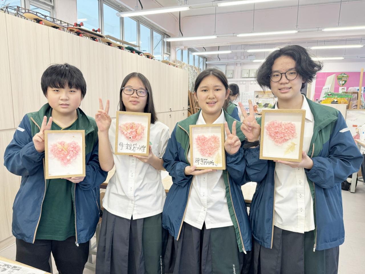 為表達對家人的謝意,弘揚孝親精神,級社於2024年5月8日舉行母親節永生花製作工作坊,同學投入參與,製作認真,製成品精美,同學於母親節當日送贈給母親,意義非凡。