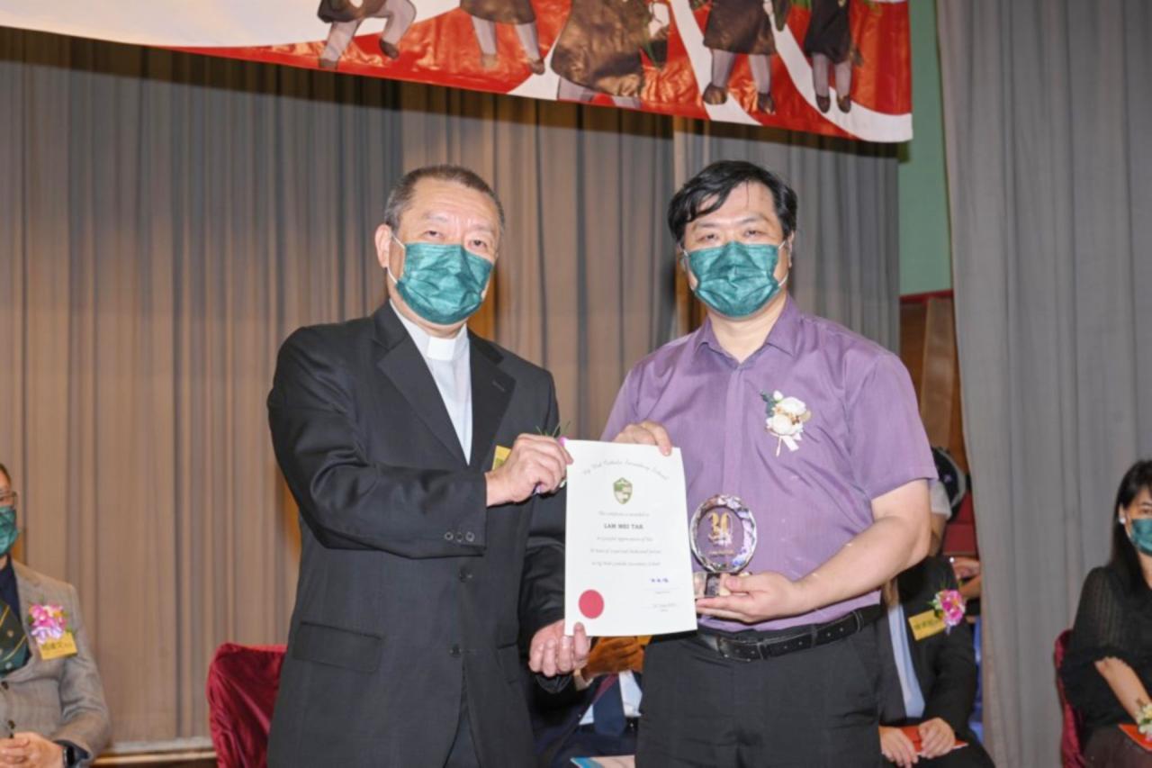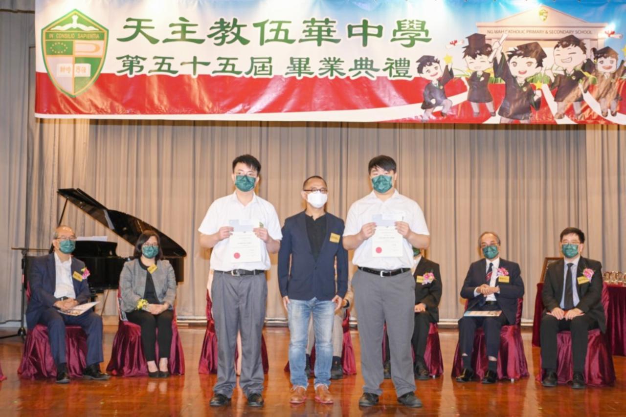 2022-06-25 第五十五屆畢業典禮於二零二二年六月二十五日隆重舉行。 典禮由校監陳德雄神父領禱開始,然後主禮嘉賓呂達文先生致訓辭,他勉勵學弟堅持追求自己夢想,保持熱情,終能邁向成功。接著呂達文先生向全體畢業生頒授畢業証書,而校監陳神父頒授教職員長期服務獎,感謝他們多年的努力付出,場內掌聲雷動,把整個畢業典禮氣氛推至高峰。 最後,畢業生代表潘慶文同學致辭,及向學校贈送紀念品,感謝師長關愛教導,感激家長和同學相知相伴,並銘記校訓慎思明辨,整個畢業典禮亦於全體師生合唱校歌下正式落幕。 活動剪影