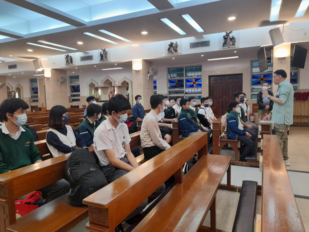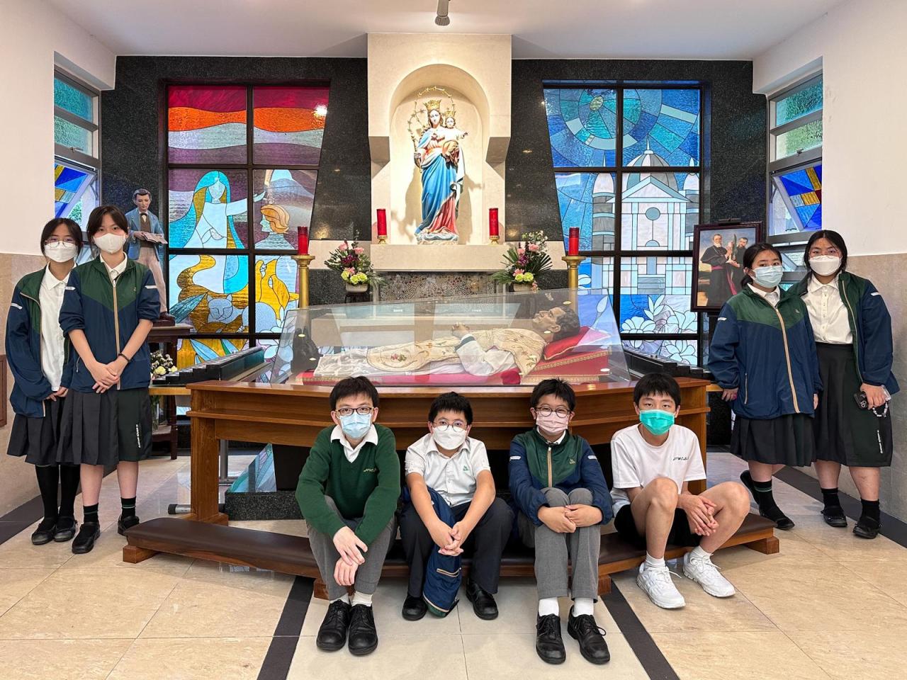 為讓同學學習聖母的芳表,善度聖母月,本校天主教同學會安排公教同學及天主教同學會幹事於二零二三年五月十二日(星期五)前往土瓜灣進教之佑堂朝聖及參觀鮑思高探知館。