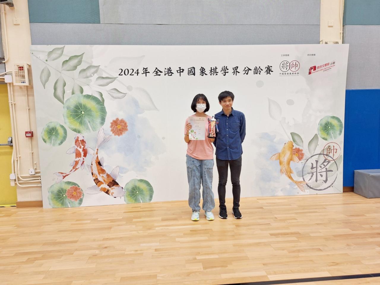 本校有5名中二級學生參加了由香港象棋總會舉辦的2024全港中國象棋學界分齡賽。 賽事共進行七輪積分循環制,同學們都努力應戰。最後,女子隊員獲得U14組別的個人冠軍及亞軍。 女子U14冠軍:2B楊紫熒 女子U14亞軍:2C范霈宜