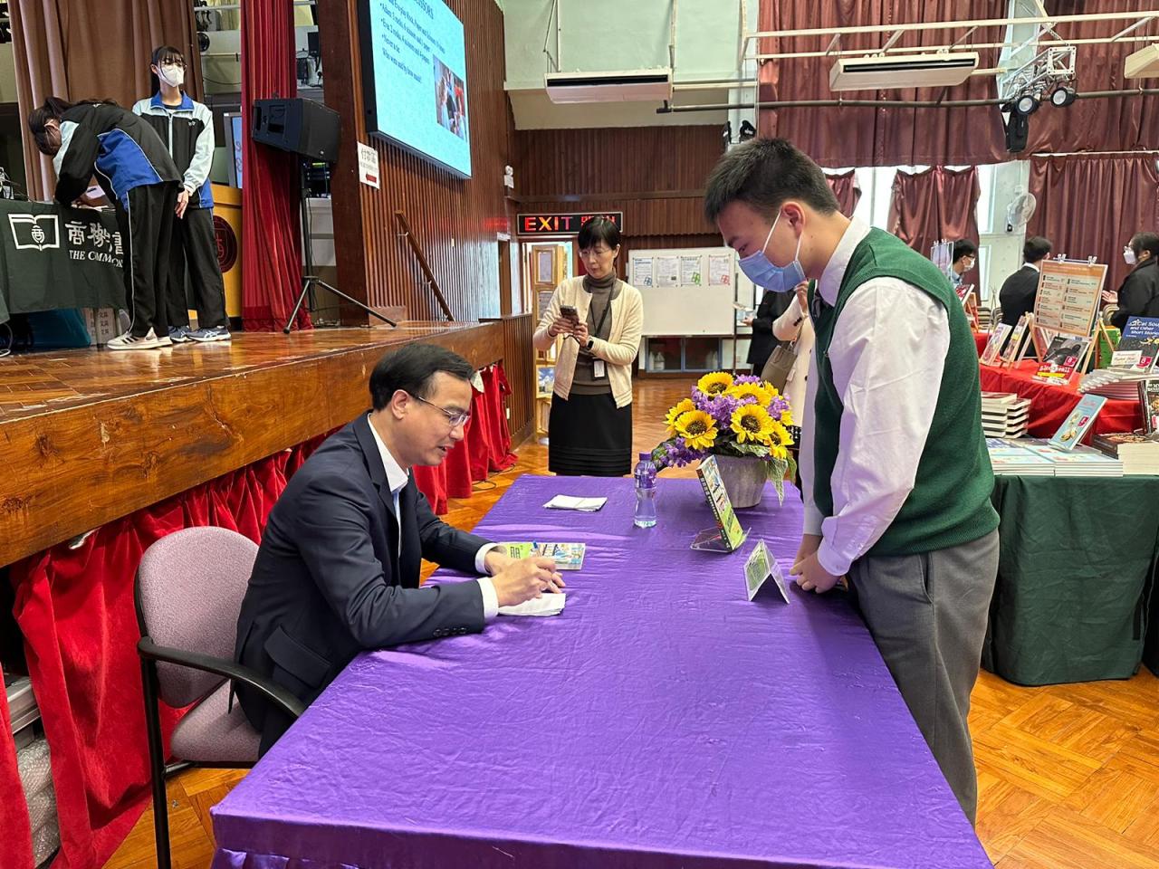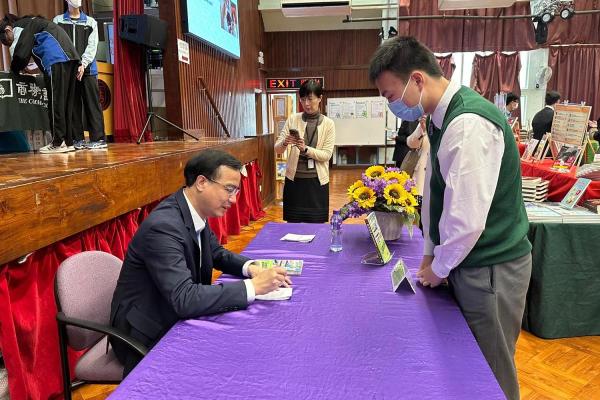 2024-03-02 為推動閲讀風氣,提高學生的閱讀興趣,推廣閱讀組於3月2日帶 領了14位同學參觀由屯門天主教中學舉辦的書展。活動中,同學們參 加了資深傳媒人鍾志光先生「師生情永在」的主題講座,參觀了書展 並選購了心儀書籍。透過與友校的閲讀交流,同學們增廣了見聞,提 升了閲讀的興趣。