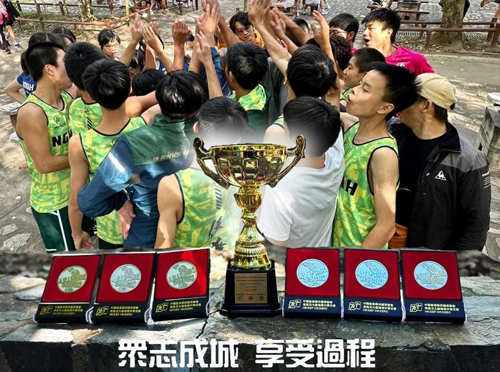 2023-11-15 「中學校際越野比賽」於11月15日舉行,本校越野隊參與了第三組第三區中男子甲、乙、丙組,以及女子丙組共四項分組賽事。本校男子丙組隊員表現卓越,他們以總分121分力壓來自二十多間學校共108位選手,取得團體總亞軍。黎廣裕及鄭智航更分別榮獲個人第3名及第6名,功不可沒。奪亞團體隊員包括1C鄭智航、2B黎嘉隆、2B黃卓言、2C黎廣裕、2C許賢納和2D李卓峰。